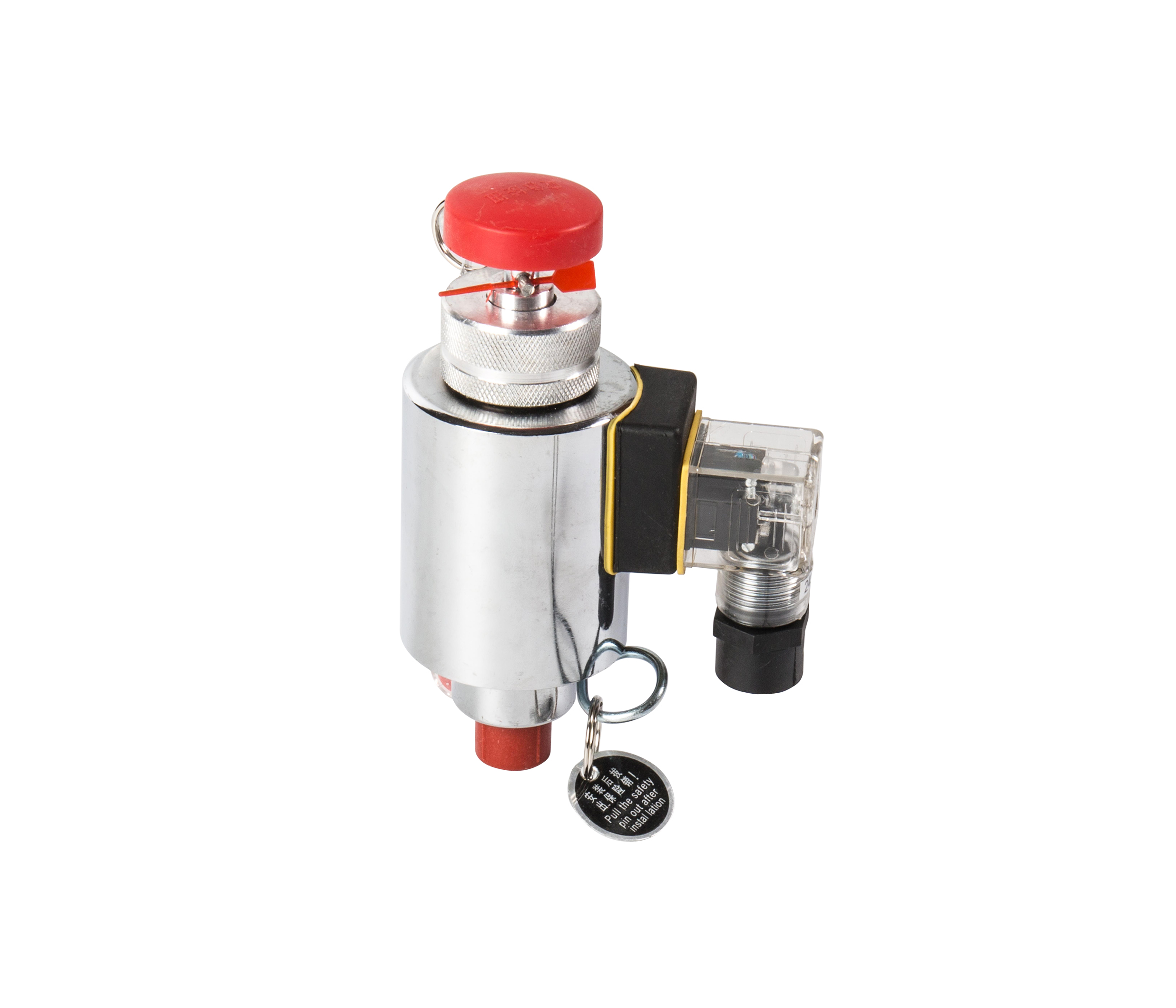 火災(zāi)時,控制器發(fā)出滅火指令,使電磁型驅(qū)動裝置動作,打開容器閥,釋放驅(qū)動氣體,驅(qū)動氣體通過驅(qū)動管路打開相應(yīng)的選擇閥和滅火劑瓶組容器閥,釋放滅火劑,實現(xiàn)滅火。緊急情況時,可以立即拔出應(yīng)急啟動安全保險銷,壓下按鈕,啟動滅火系統(tǒng)。