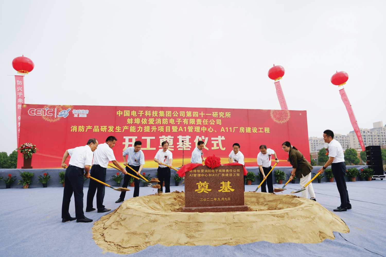 依愛(ài)消防A1管理中心和A11電子廠房建設(shè)工程奠基儀式