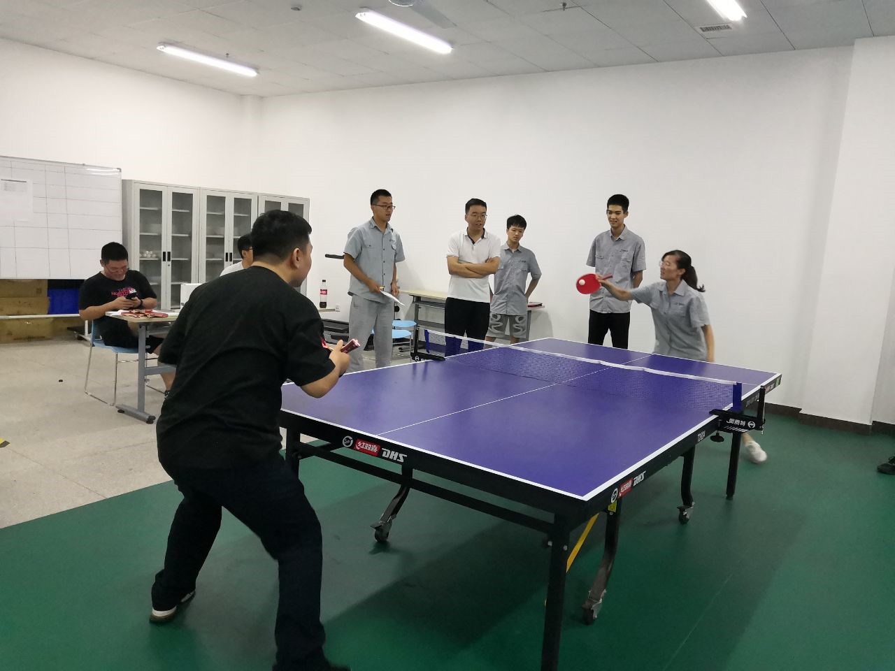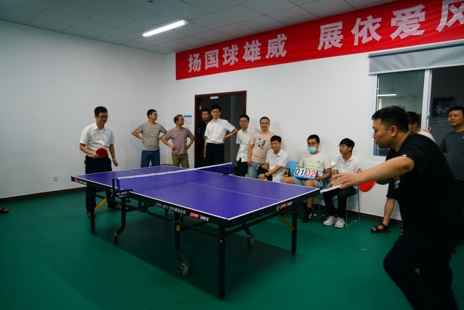 下午進(jìn)行的團(tuán)體比賽,現(xiàn)場氣氛進(jìn)入了高潮。本次比賽規(guī)則規(guī)定,男女對打時,在每一局開始時,女選手以8:0開始,雙打有女選手的一方以6:0開始,與女選手比賽時,男選手壓力非常大,每一局都緊張刺激,現(xiàn)場觀眾給雙方加油聲不斷。最終,按照決賽積分排名,研發(fā)一隊(duì)(翟耀、王建軍、桓宗圣)獲得第一名,研發(fā)二隊(duì)(方宜海、王立龍、龐傳道)獲得第二名。