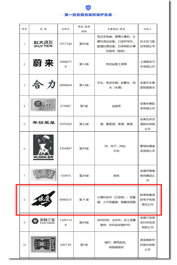 近日,安徽省市場(chǎng)監(jiān)管局發(fā)布第一批安徽省商標(biāo)保護(hù)名錄,依愛商標(biāo)榮幸入選。