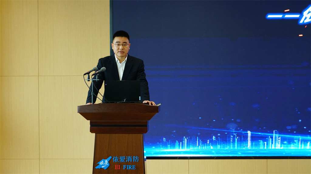 上午九點三十分,依愛消防2023工作總結與2024經營計劃報告會在A1管理中心六樓報告廳召開。辛厚智副總經理主持本次會議,公司領導、全體中干、高級專務、銷售大區(qū)助理及以上人員、研發(fā)組長及骨干、生產班組長及以上人員、崗位標兵、優(yōu)秀創(chuàng)新團隊成員參加了本次會議。