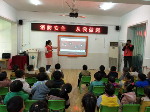 志愿者們根據(jù)幼兒年齡小、理解能力較弱的特點(diǎn),利用卡通圖片及簡(jiǎn)潔易懂的小兒歌,就火災(zāi)的危害性、119報(bào)警注意事項(xiàng)、疏散逃生要點(diǎn)及滅火器使用方法等消防安全常識(shí)進(jìn)行了詳細(xì)講解。